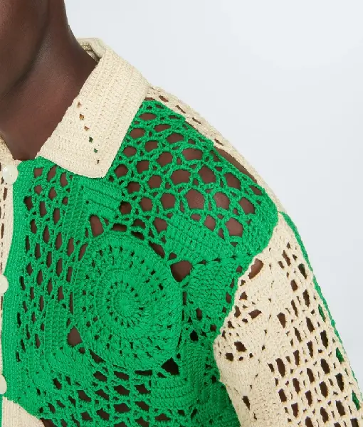 Access Daily 2025 Scott Evans Green and Ivory Crochet Knit Shirt