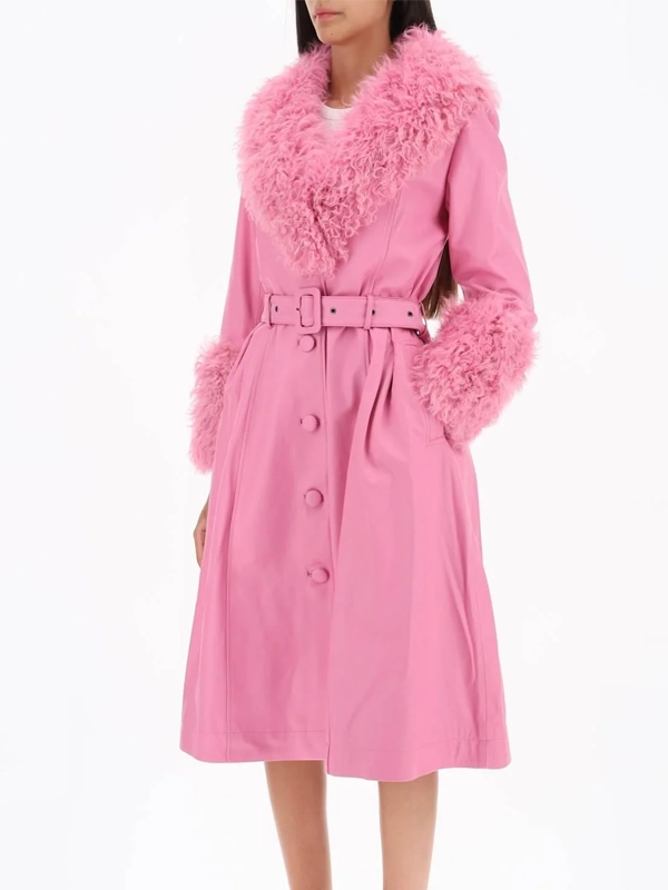 Big Bash Elle King Pink Leather Shearling Coat