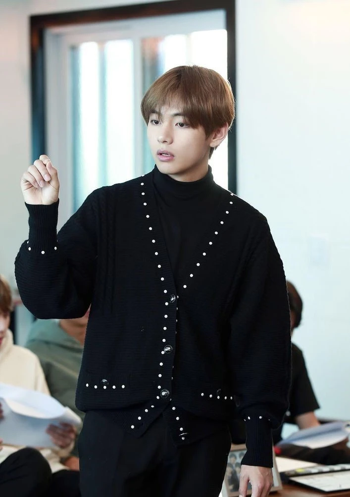 BTS Taehyung Black Stitched V-Neck Cardigan