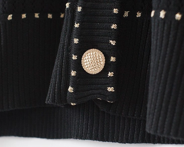 A black stitched V-neck cardigan is a classic and stylish piece of knitwear with stylish and functional details. A V-neck design that shows the neckline and is ideal for layering over shirts, blouses, or turtlenecks. This cardigan is a wardrobe must for multiple occasions because of its black color and stitched features, which allow it to be dressed differently.