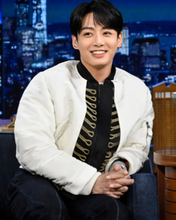 Standing Next to You On Show Jungkook White Bomber Jacket