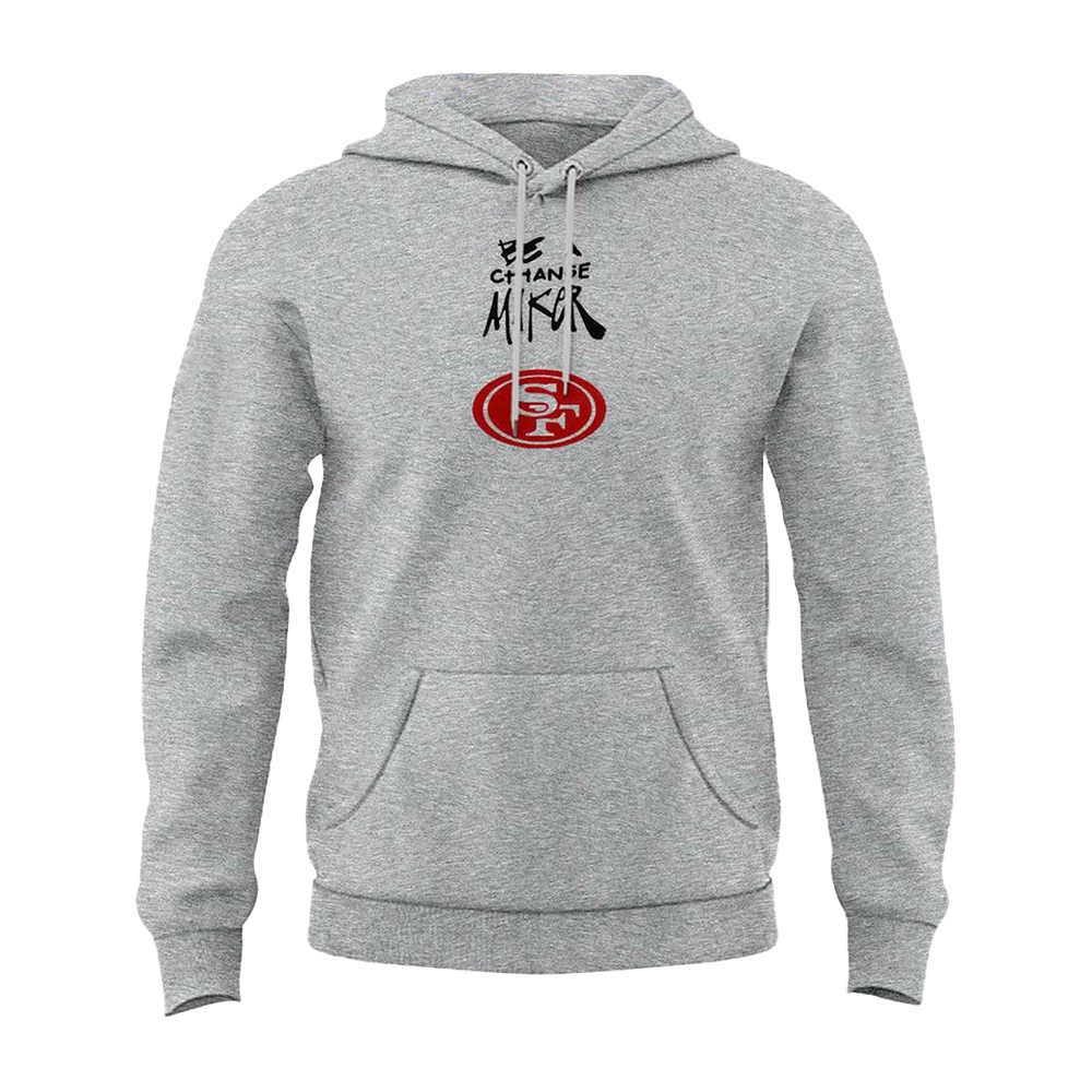 San Francisco 49ers be a change maker hoodie crafted from high-quality fleece fabric, offering warmth and comfort, making it suitable for cooler weather, the interior features a soft lining, equipped with a hooded-style collar, offering additional protection against the elements and a casual aesthetic and along with two kangaroo style pockets. This outwear is ideal for fans who wish to express their support for the San Francisco 49ers while also advocating for meaningful change in their communities.